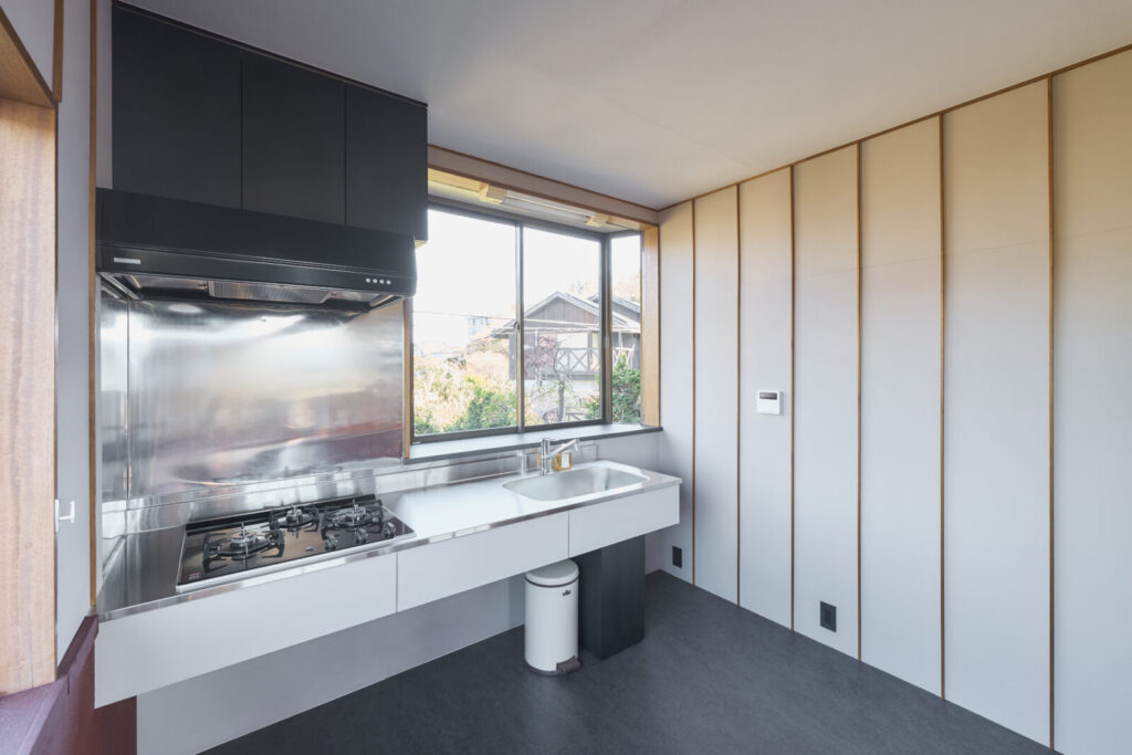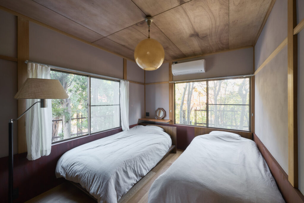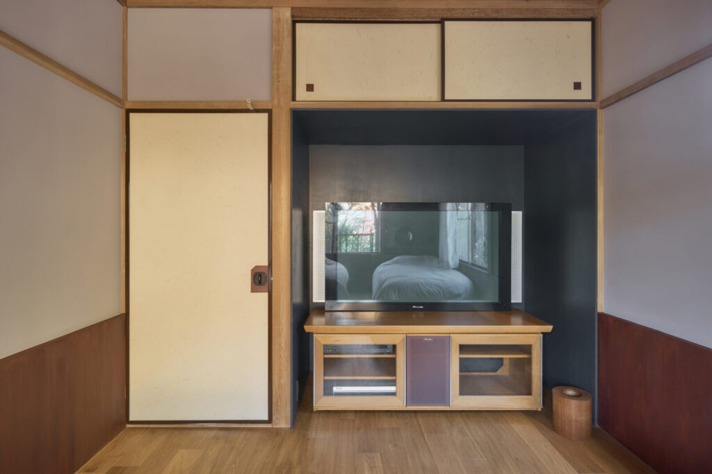 仕上げ材を、既存の上に重ねるように施した、別荘の改修プロジェクト。