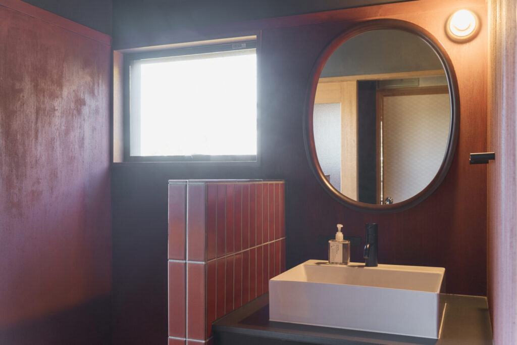 一方全体的に観察すると、和室や浴室、リビングやキッチンと、それぞれの部屋は違う言語で作られているようなバラバラな状態。褐色をキーカラーに空間の帯を締めるようにして、一体的な体験に変えることを考えました。