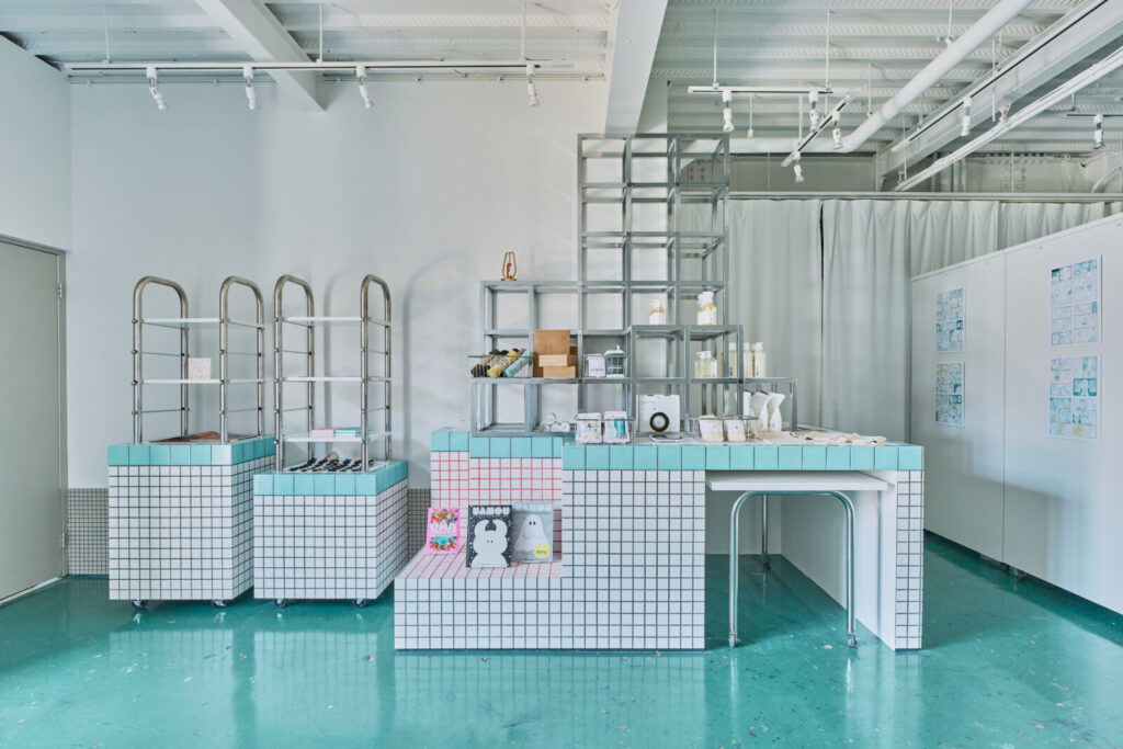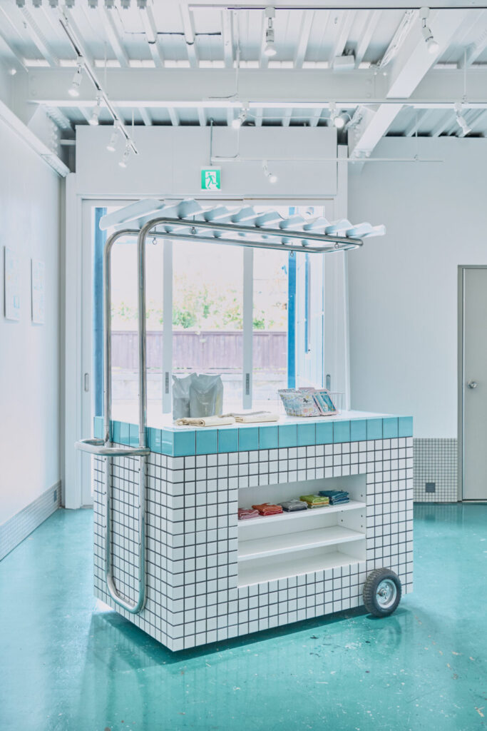 “動くタイルインテリア風景”をつくる什器は“U-GU(遊具)”と名づけ、展示什器や、ポップアップのための屋台、ワークスペースブースなど、楽しく遊び心を持って活用していく仕様をお客さんと相談しながら決めていきました。