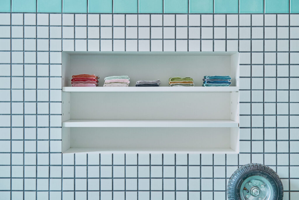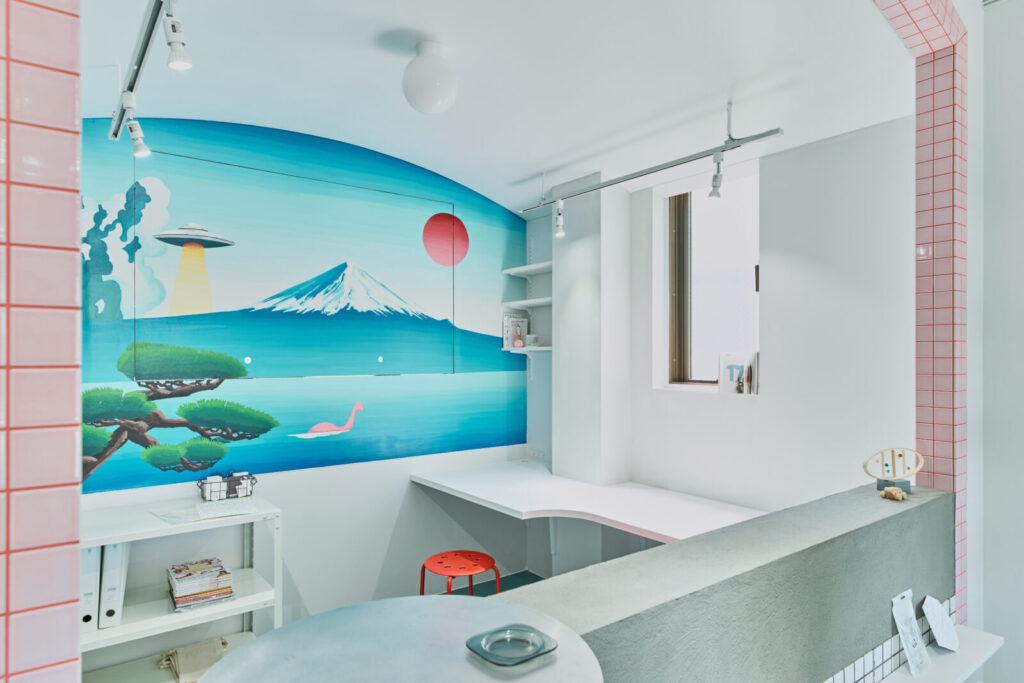 “銭湯“から連想されるモザイクタイルインテリアを広義な視点で捉え直し、作品展示やワークショップイベント、働く場所など、あらゆる使い方に応じて空間のモザイク柄や凹凸が変わりゆく、“動くタイルインテリア風景”を想像したところに始まります。