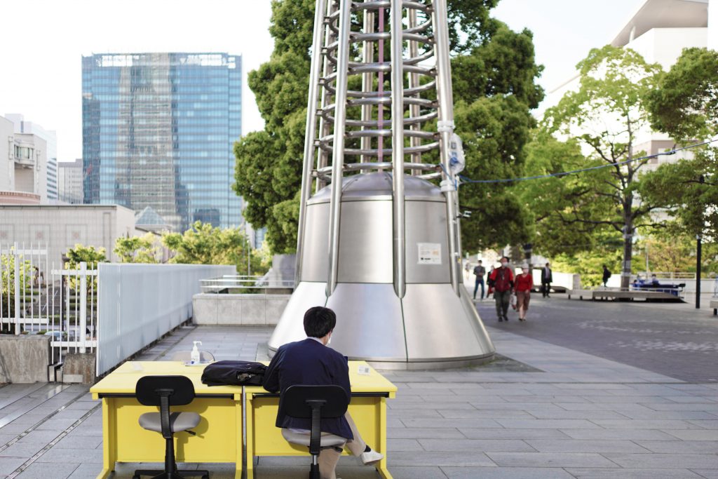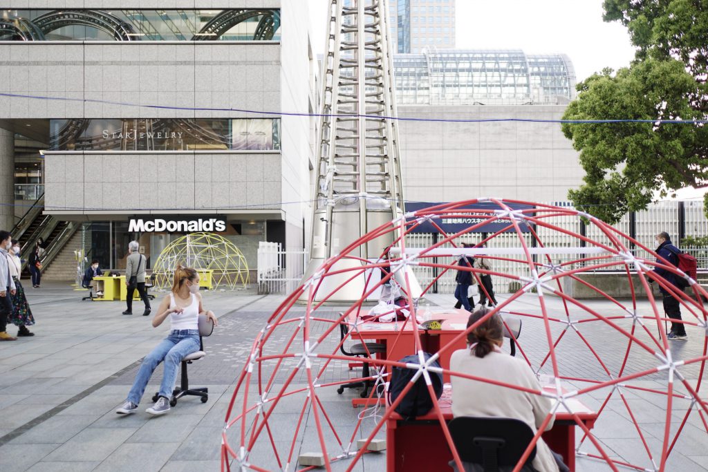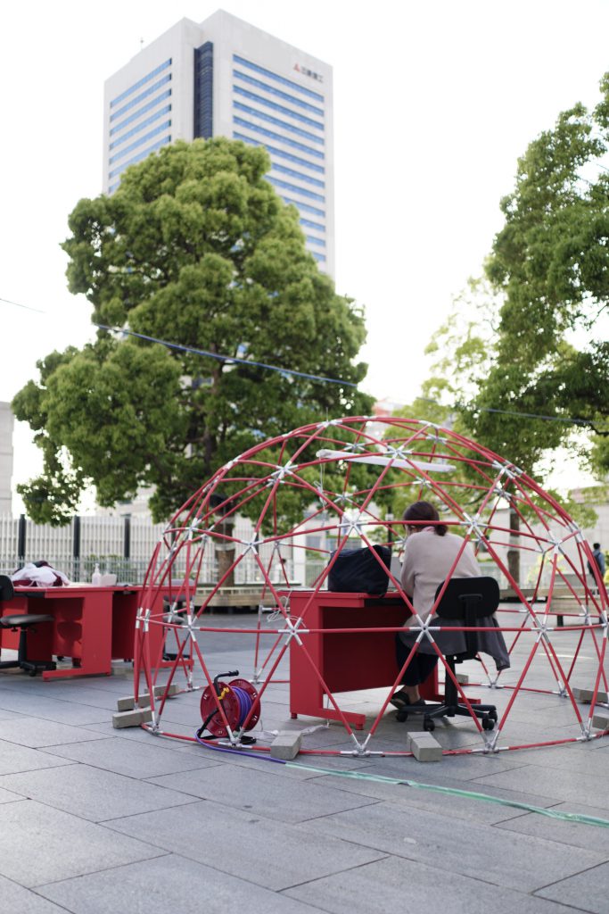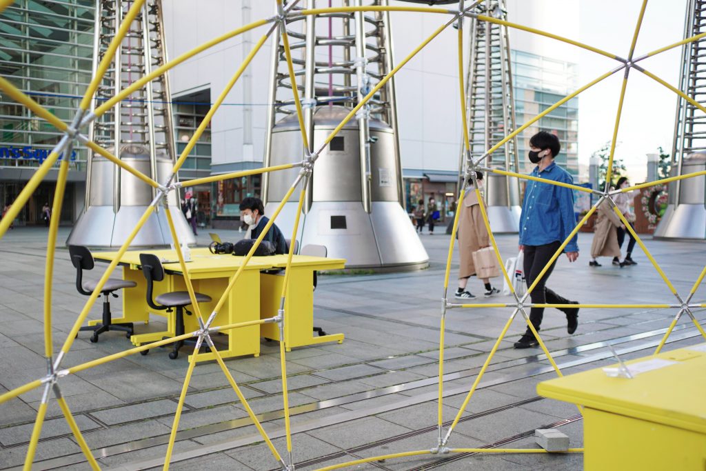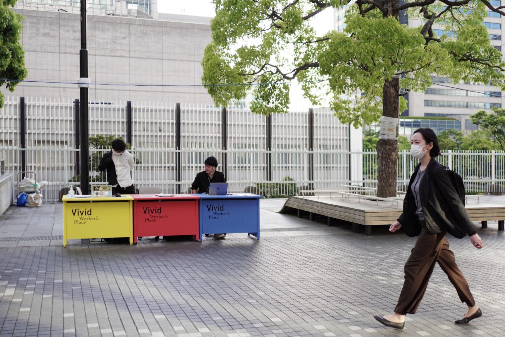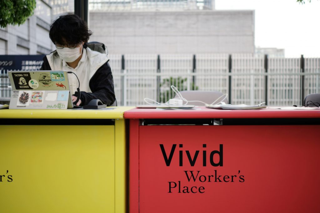 「Vivid worker’s place」と名付けられたこのプロジェクトは、「外で働く」をテーマにした実証実験。企画を行うYADOKARIと協働し、働く姿を魅せるアウトドアオフィスを具体化した。